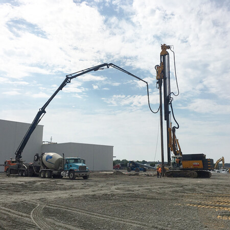 soil stability challenges. The GeoConcrete Column system increases bearing capacity, reduces settlement, and provides an ideal foundation solution for structures built on soft or compressible soils. The system’s innovative displacement installation method reduces spoils, eliminates the need for casing, and shortens construction schedules—all while providing rigid, dependable support for the structure.